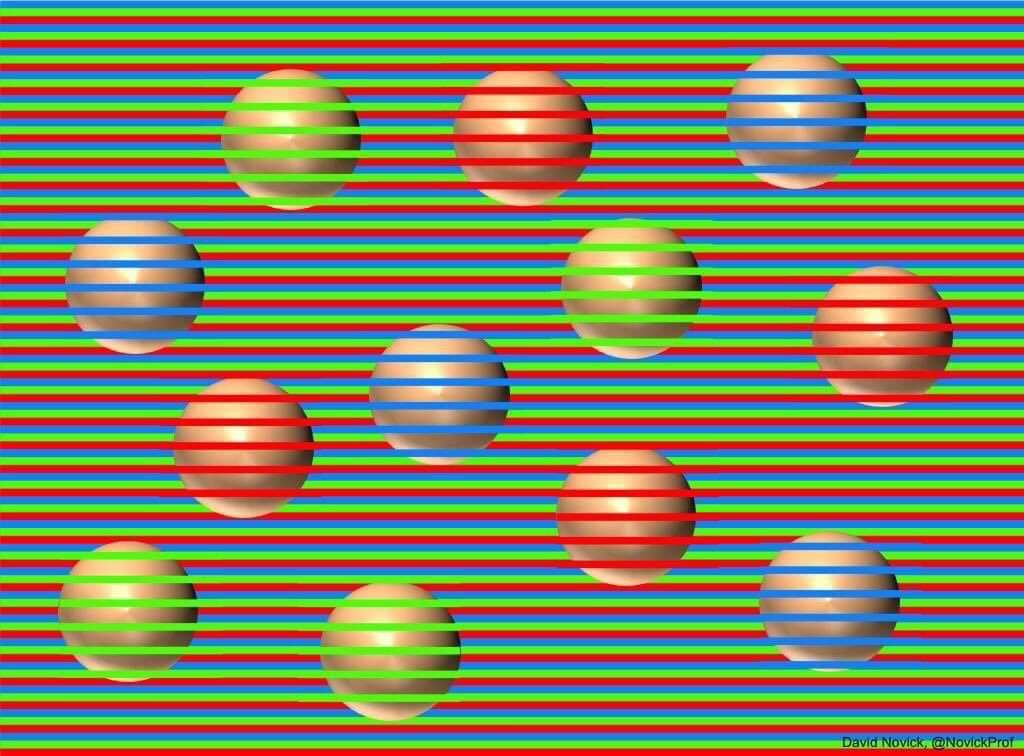 Je denkt dat je verschillende kleuren balletjes ziet. Totdat iemand je erop wijst dat de balletjes eigenlijk allemaal dezelfde kleur hebben.