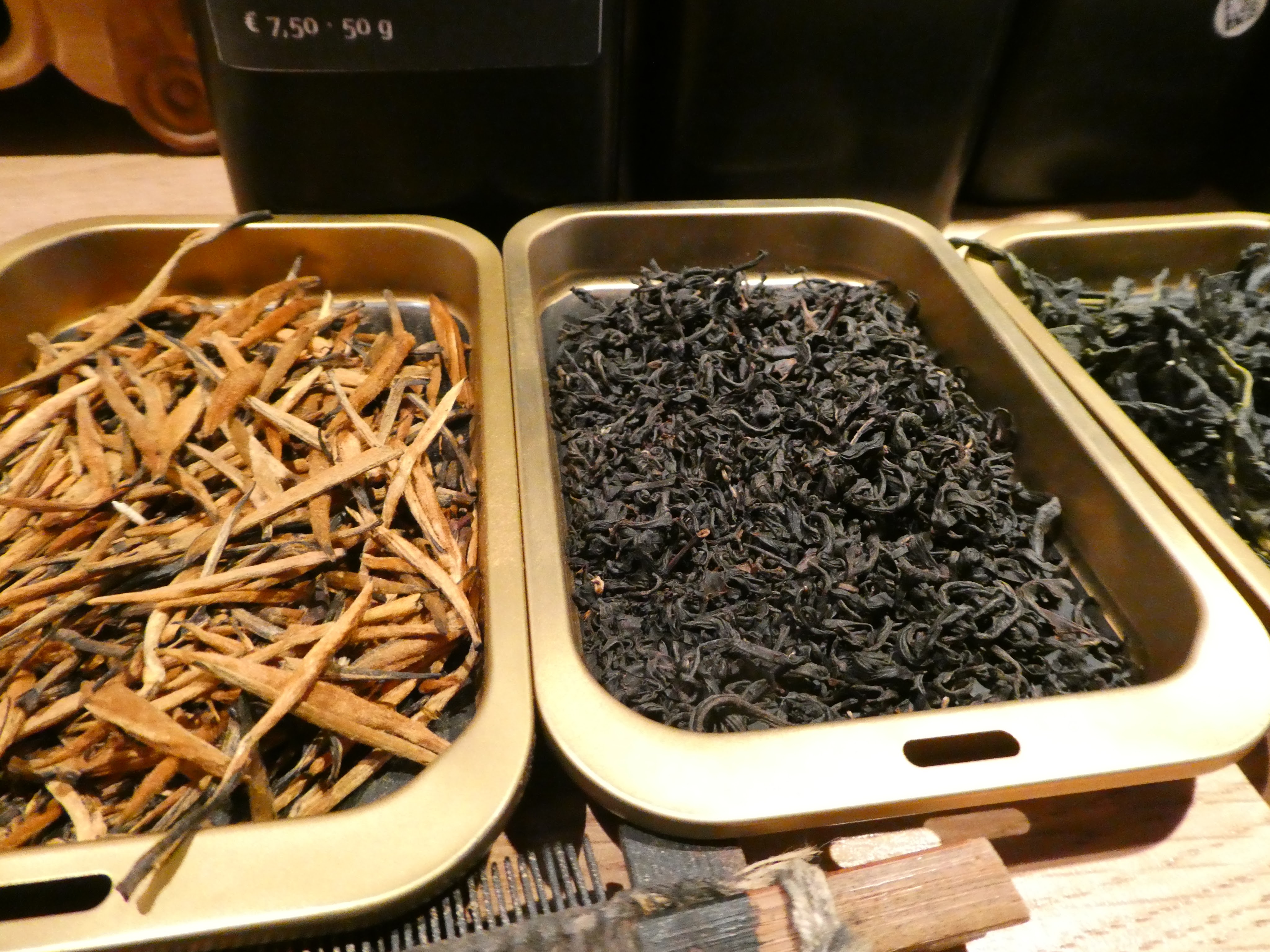 Nu had ik gelezen dat ze ook thee van de theeplantage uit Brabant hadden. Uiteraard wilde ik dat hebben om zelf thuis te gaan proeven. Dus ik heb Witte thee, Groene en zwarte thee gekocht. Ook een heel schattig mini Pu-Ehr cakje gekocht. Verder nog Da Jin Ya en Da Jin Zhen gekocht. Hele mooie goudkleurige bladeren. Nu kun je nooit teveel thee hebben dus ik was superblij met de samples die ik kreeg!!! Uiteraard komen daar nog wel een keer foto’s van op Instagram als ik daar in ga duiken. Uit de categorie Teaware heb ik ook een superhandige Gong Fu Style (thermos) fles gekocht. Dubbelwandig borosilicate glas dus hitte bestendig. Vanaf nu elke dag échte thee tijdens mijn theepauze op het werk.
